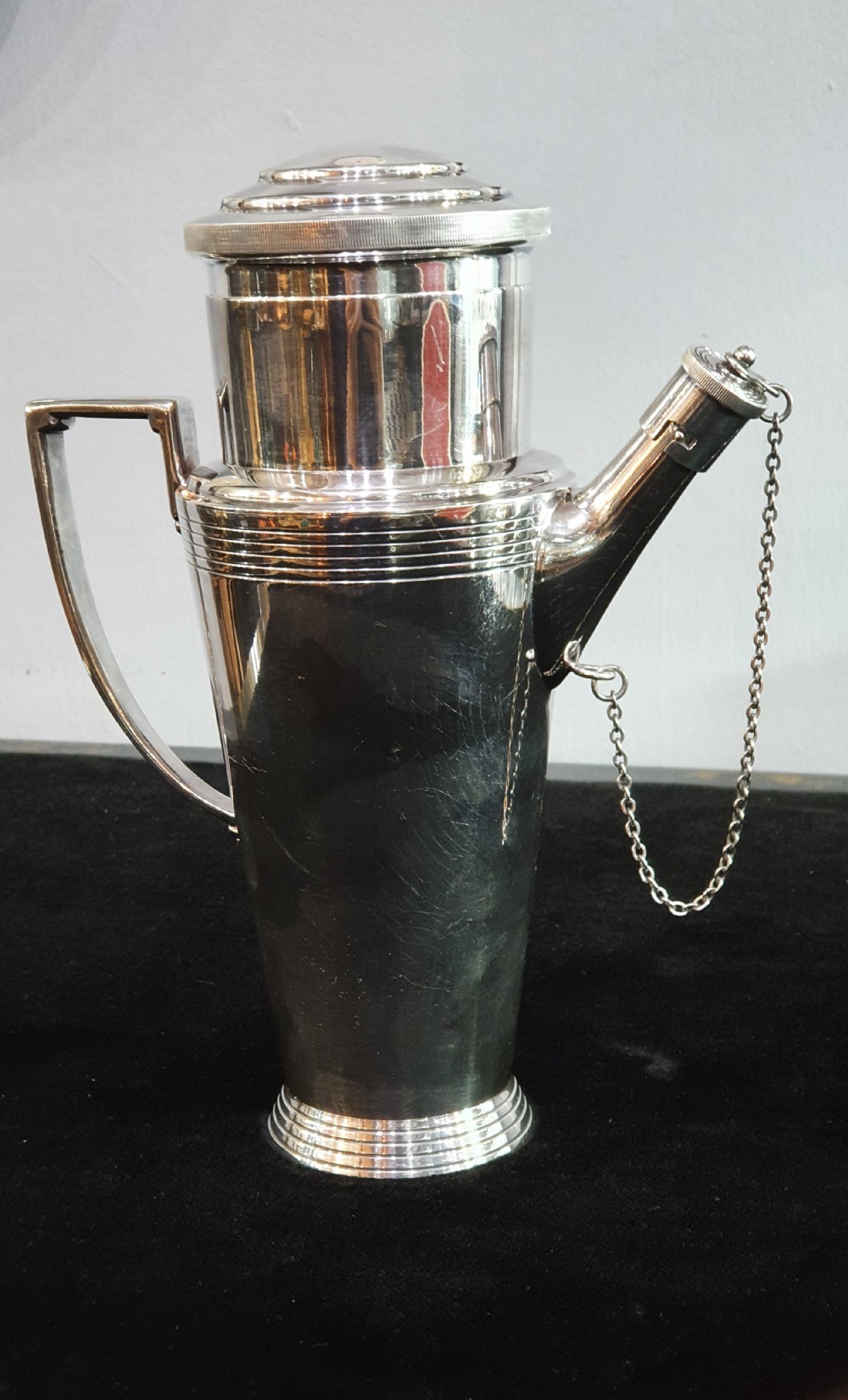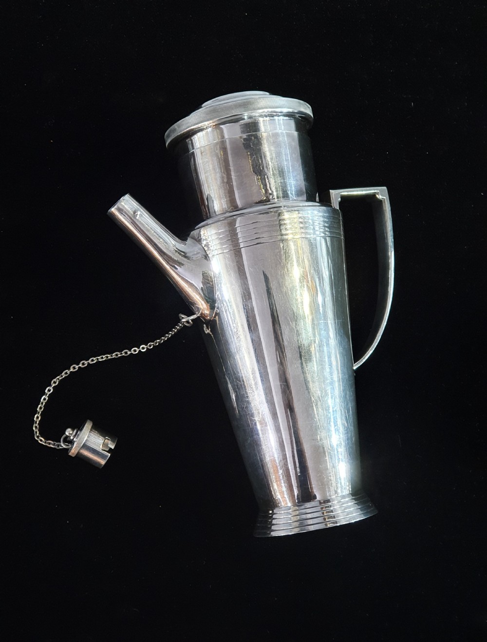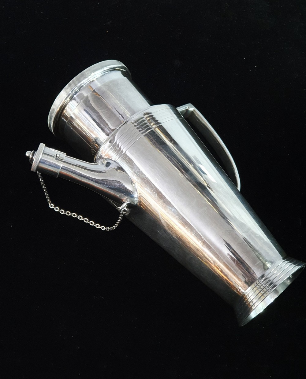 Mappin & Webb, Keith Murray design, Art Deco silver plated cocktail shaker c1930. Signed to the underside. Height: 22cm Width: 19cm Depth: 10cm Condition: excellent. __________________________________ To buy this item please click on the "BUY NOW with CREDIT CARD or PAYPAL" button underneath the Item Ref or phone the shop on 07903 740299. __________________________________ We offer a ring resize service. Typical cost £40. __________________________________ We offer a next day recorded postal service on most items with insurance and tracking. Please enquire. __________________________________ We accept all forms of payment - payment over the phone, bank transfer, all major credit & debit cards. We can place items on reserve subject to a 10% deposit. Deposits are non refundable. __________________________________ We ship worldwide. Shipping to U.S.A, Canada, Australia, UAE. Africa & Europe. Please contact me about postage as prices vary. __________________________________ Layaway plan. We offer an option of paying for your goods in instalments, taking delivery upon payment of final instalment. Please enquire for details. __________________________________ Established over 30 years, buy with confidence from a physical shop with an online presence. We offer the most comprehensive luxury and deco goods range in the Cotswolds and we are adding new lines all the time, and will not be beaten on price. ___________________________________ Do not hesitate to contact us with any questions and we will be glad to answer you as quickly as possible.: andy.green007@btinternet.com, Mobile 07903740299/ +447903740299 Whatsapp +447903740299 ___________________________________ Terms & Conditions for online purchases: If for any reason you are not entirely satisfied with your purchase, please return the item in its original packaging within 14 days of purchase. Buyer to pay the return postage. A handling charge/ restocking fee to cover administration and transport costs may be applied. Unfortunately we are not able to offer a refund on earrings but we may be able to offer an exchange or gift voucher. ___________________________________ Internal Ref: 140421